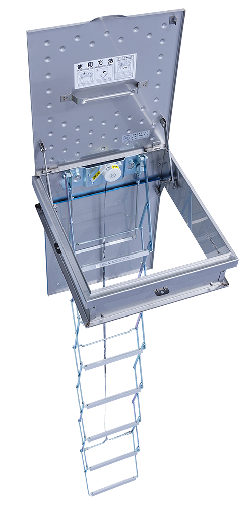 金属製の折りたたみ梯子内蔵タイプの避難ハッチです。