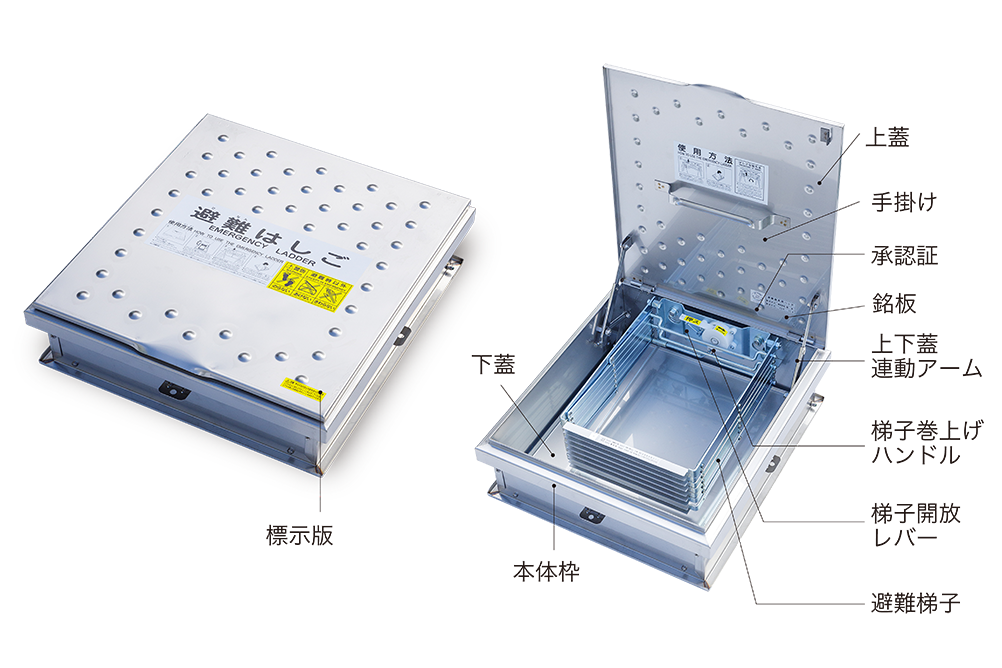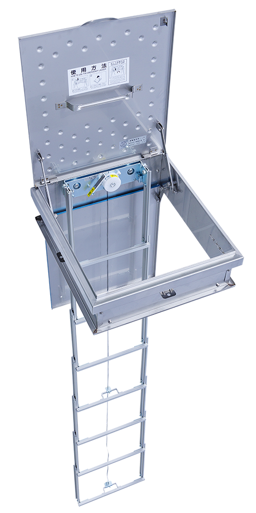 金属製の伸縮式梯子内蔵タイプの避難ハッチです。